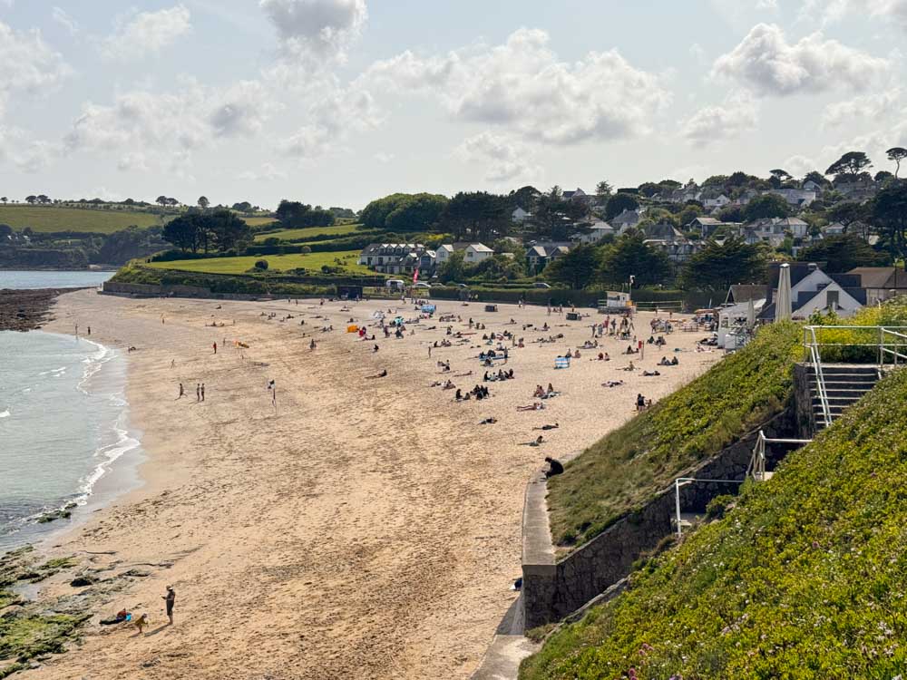 Known locally as “Gylly,” this is Falmouth’s main Blue Flag beach. It’s famous for its calm waters and golden sand.